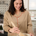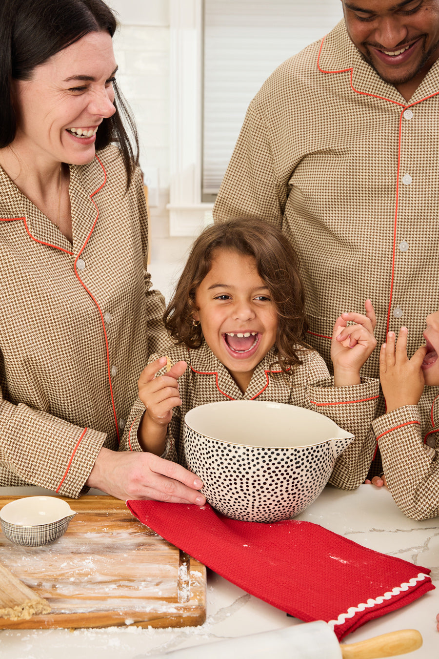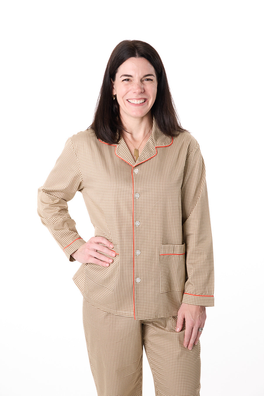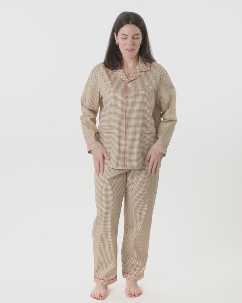 • Patterned for Refinement: A timeless houndstooth print trimmed in bold red piping brings polish to the everyday. Elegant and versatile, it’s the pajama you’ll reach for on slow mornings, weekend lounging, or nights that deserve a little ceremony.