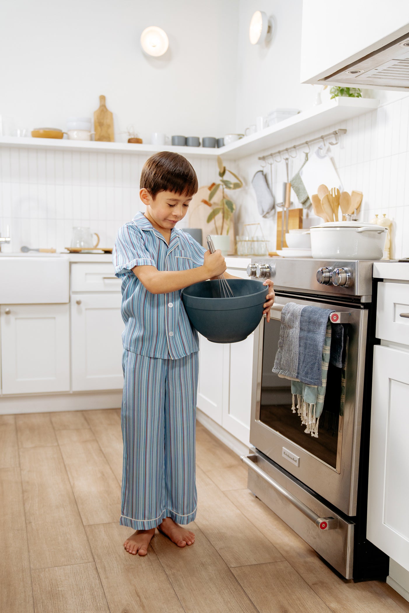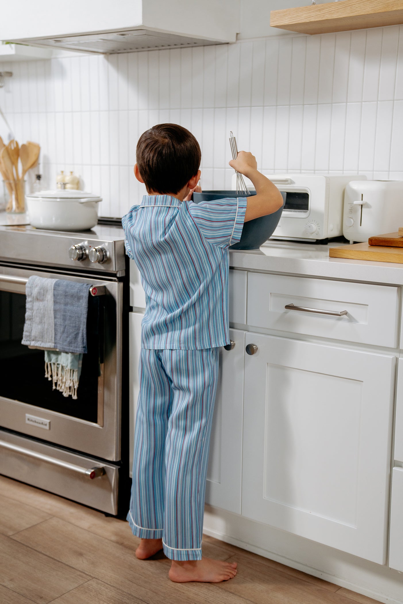Wrap your little dreamer in breathable luxury with our Bamboo Stripes Pajama Set—designed for comfort, movement, and style. Made from 100% woven bamboo, this set is ultra-soft, naturally breathable, and gentle on sensitive skin—perfect for warm nights or playful mornings.